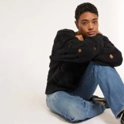 The Aaliyah is a versatile and cozy addition that adds a touch of whimsy to any outfit, perfect for creating effortlessly chic looks during the cooler seasons. With its eye-catching V neckline, ribbed hem, and cuffs, it effortlessly pairs with any of our Joie denim.