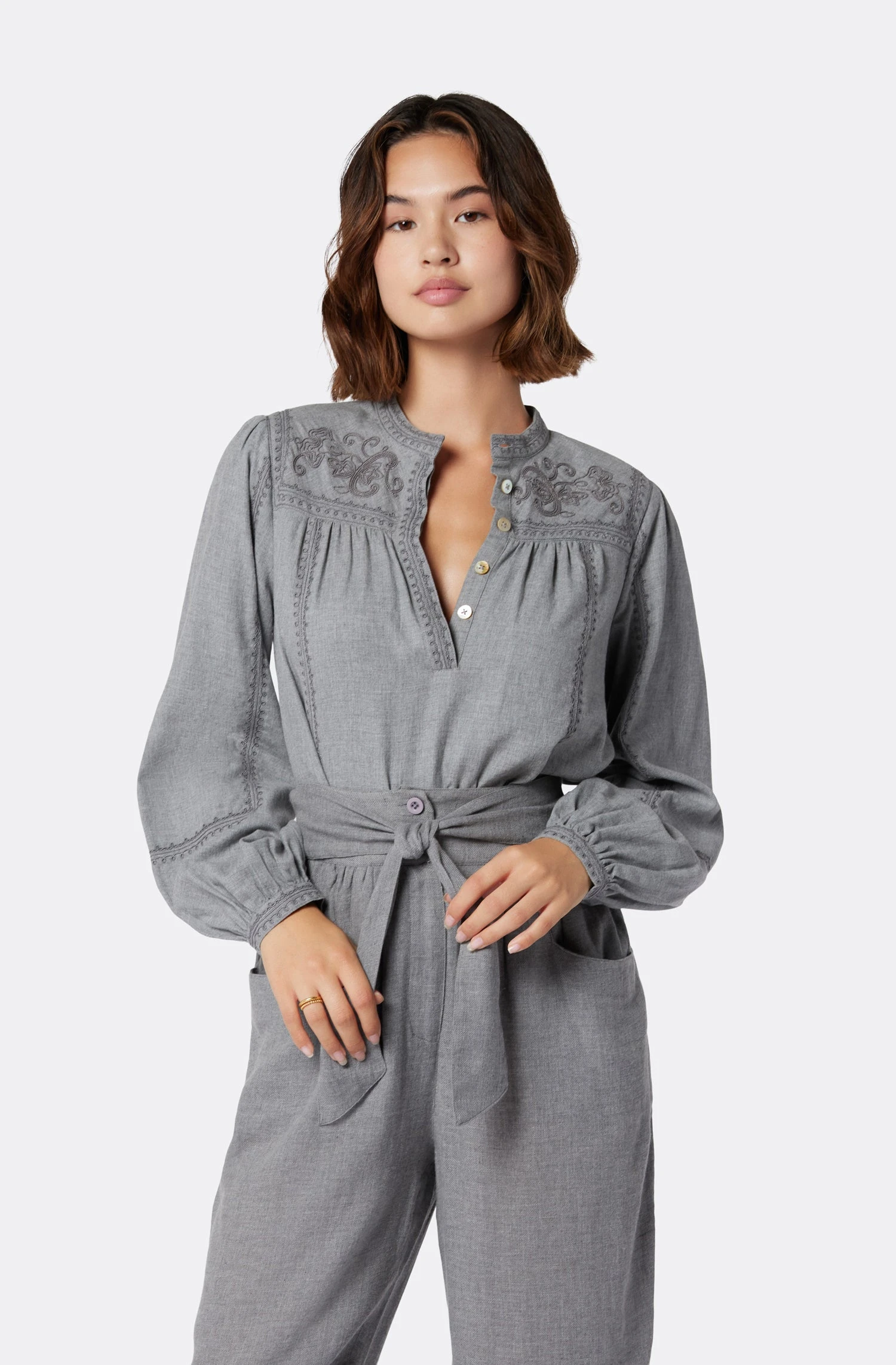 When it comes to The Anoual, it’s all about the hand-embroidered details that embellish its voluminous sleeves, neckline, and bodice. Pair this romantic top with denim for a laid-back look or wear it with its perfect match The Dalou.