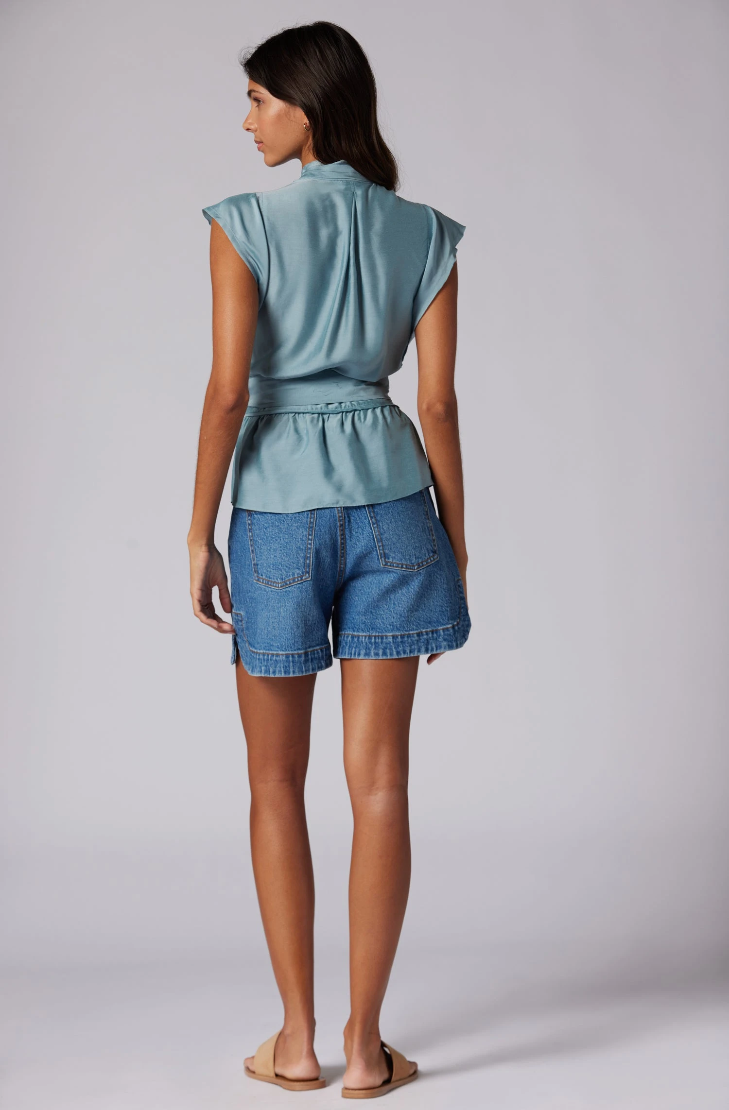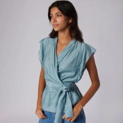 The Ashlene is here to flatter any shape and empower you with its summer silhouette. This silk satin wrap shirt is just what you need to make your wardrobe light and carefree in the most seamless way possible.