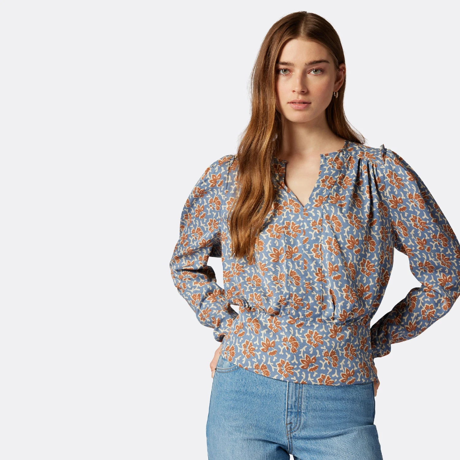 SKU: AM9PZ 7982617592034 Categories: Sale, Shirts & Blouses Tags: Age_group:adult, Category:Shirts, Category:Tops, Clothing, Color:Country Blue Multi, Custom_label_2:Sale, Final sale, Gender:female, Generic_color:Blue, Long sleeve, Not Clearance, Prints, Product:Bailey Long Sleeve Top, Sale, Sale top, Spring, Tops