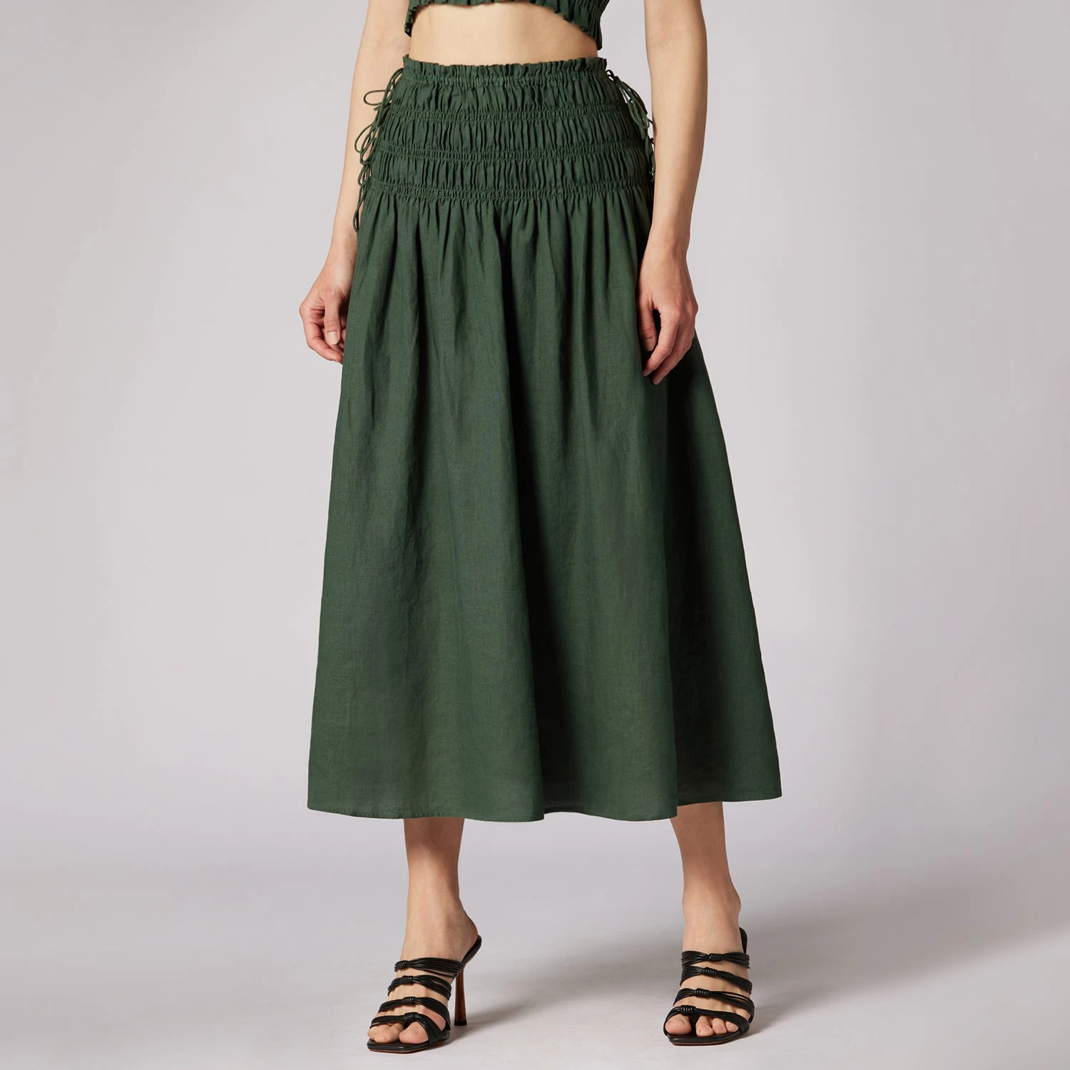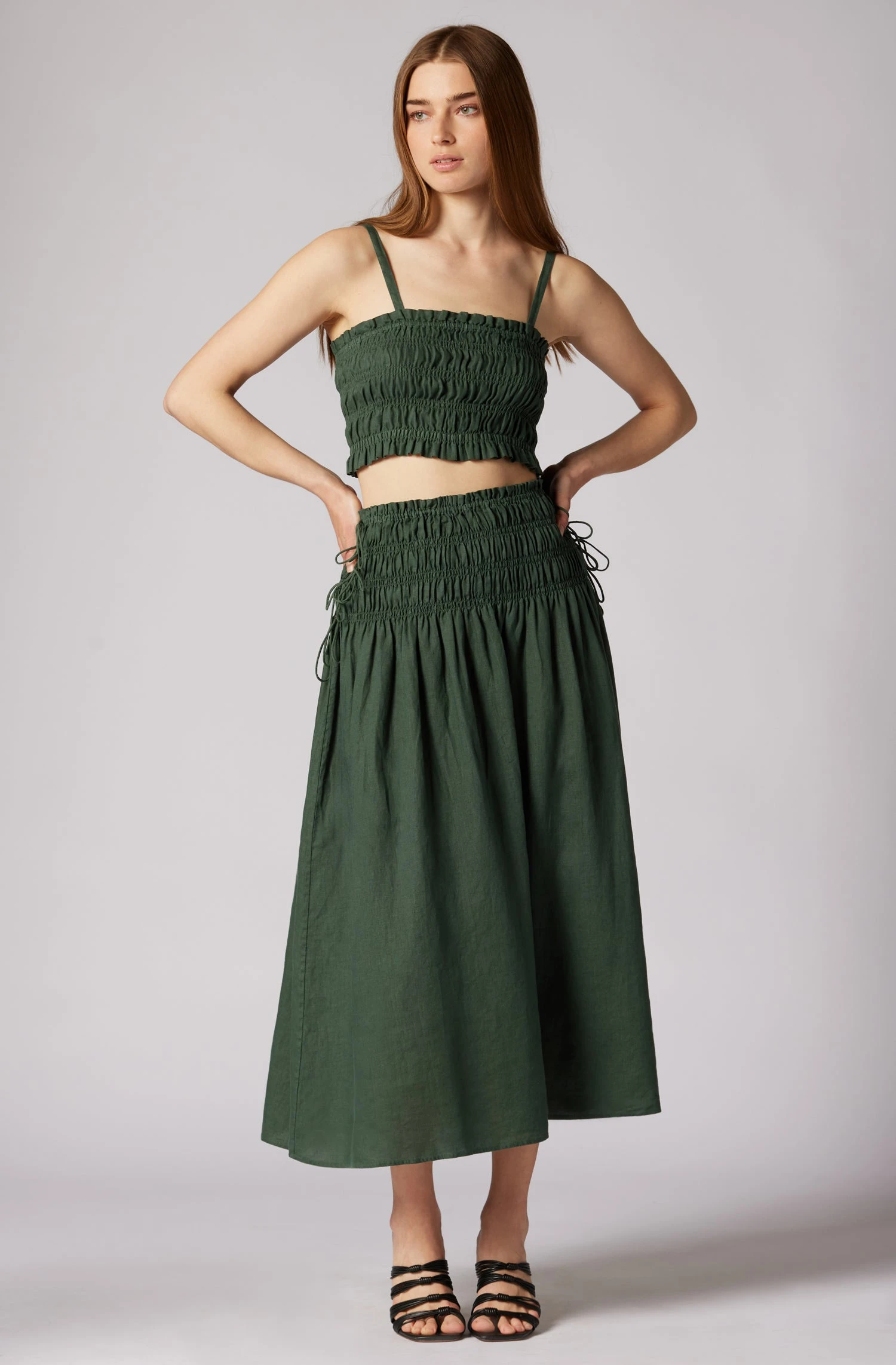 The Clover is a high-waisted linen skirt with smocking details and a full silhouette. This carefree design is The Brooklyn’s perfect match, wear them together for a monochromatic look.