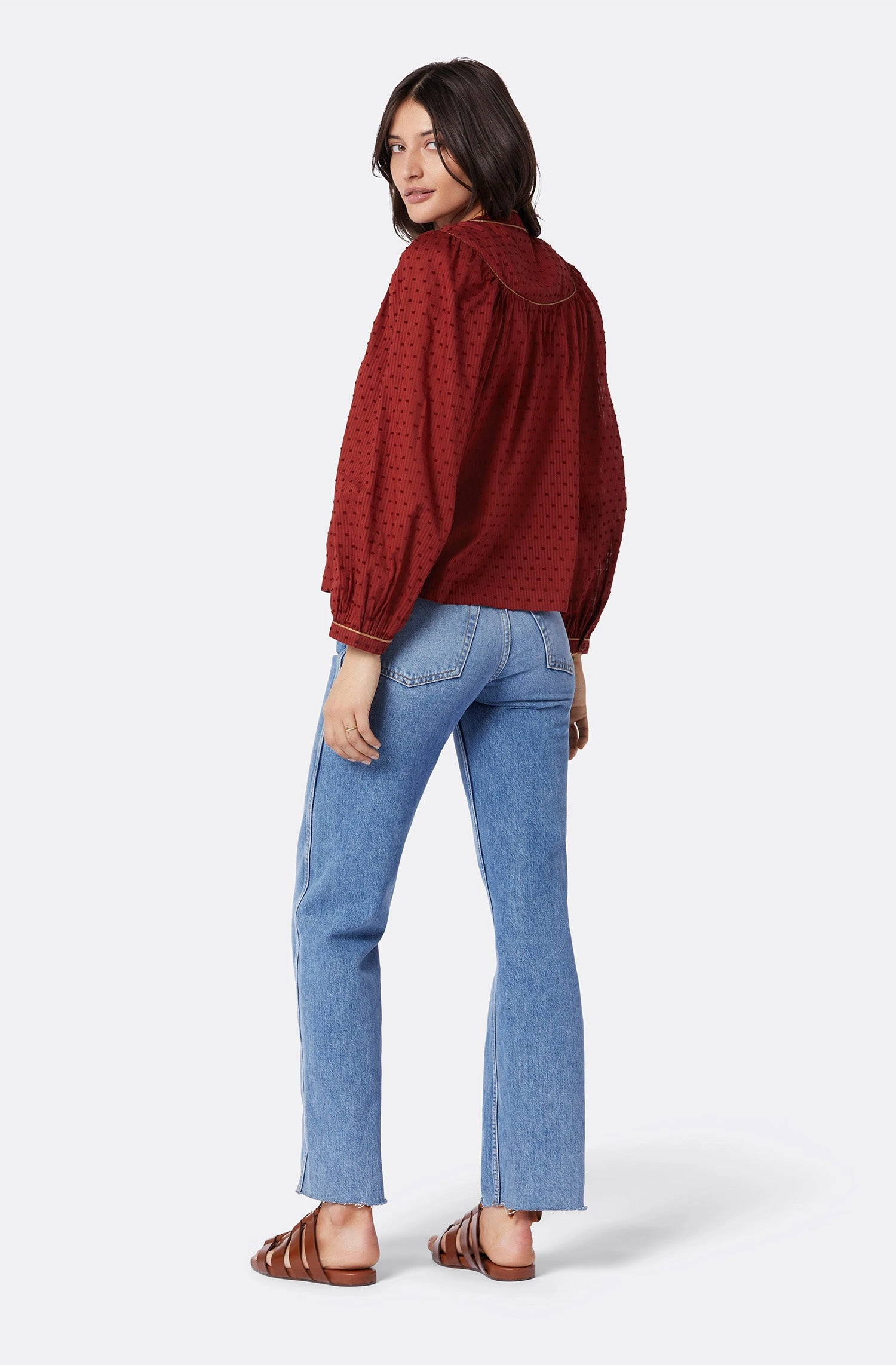 No subtleties here, The Keena makes quite the statement with slightly-voluminous sleeves, a smocked bodice, tassel strings around the neckline, and a unique print. We’re all about the details, and this cotton top features hand-stitched finishes around the neckline and cuffs.