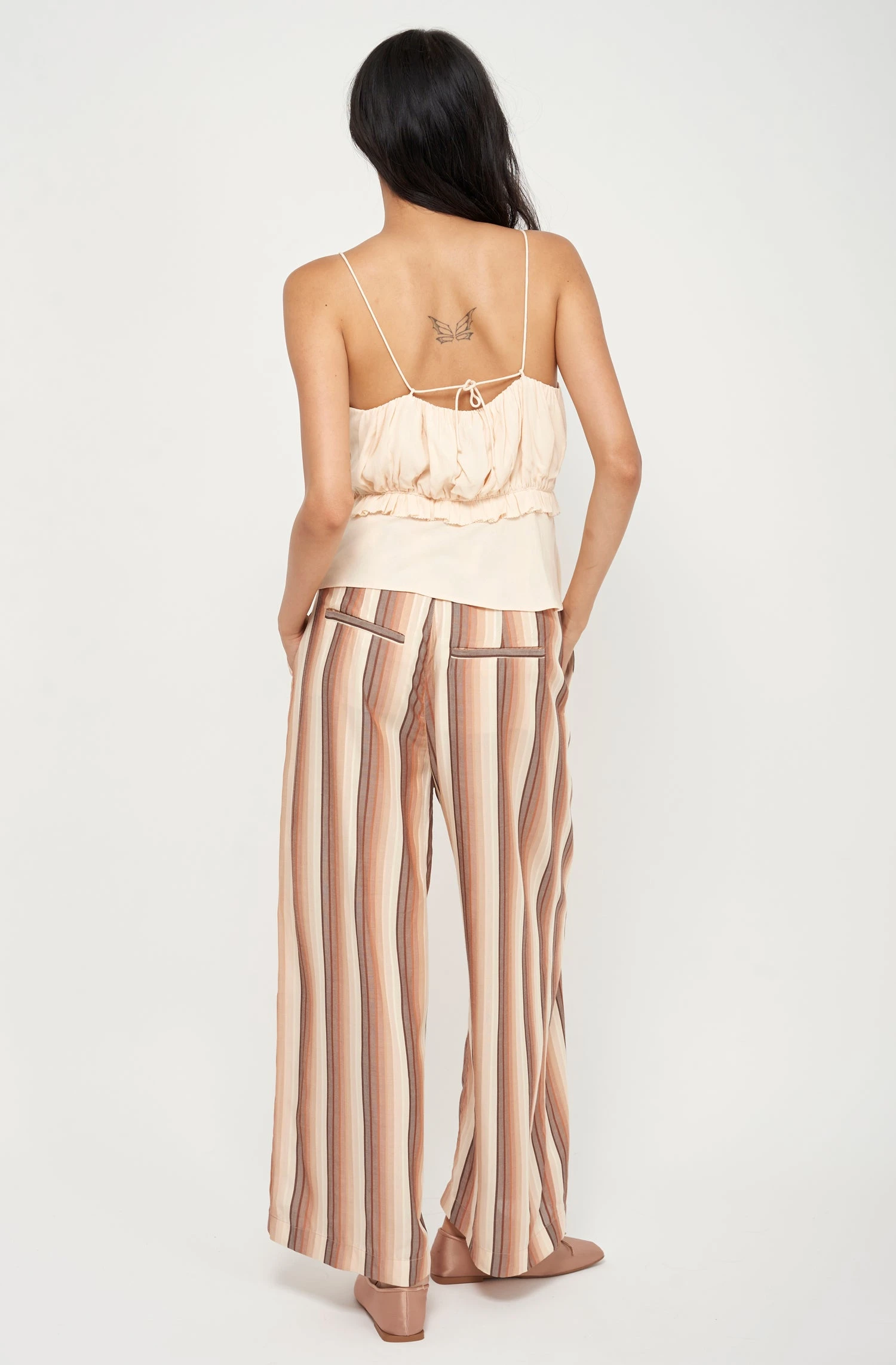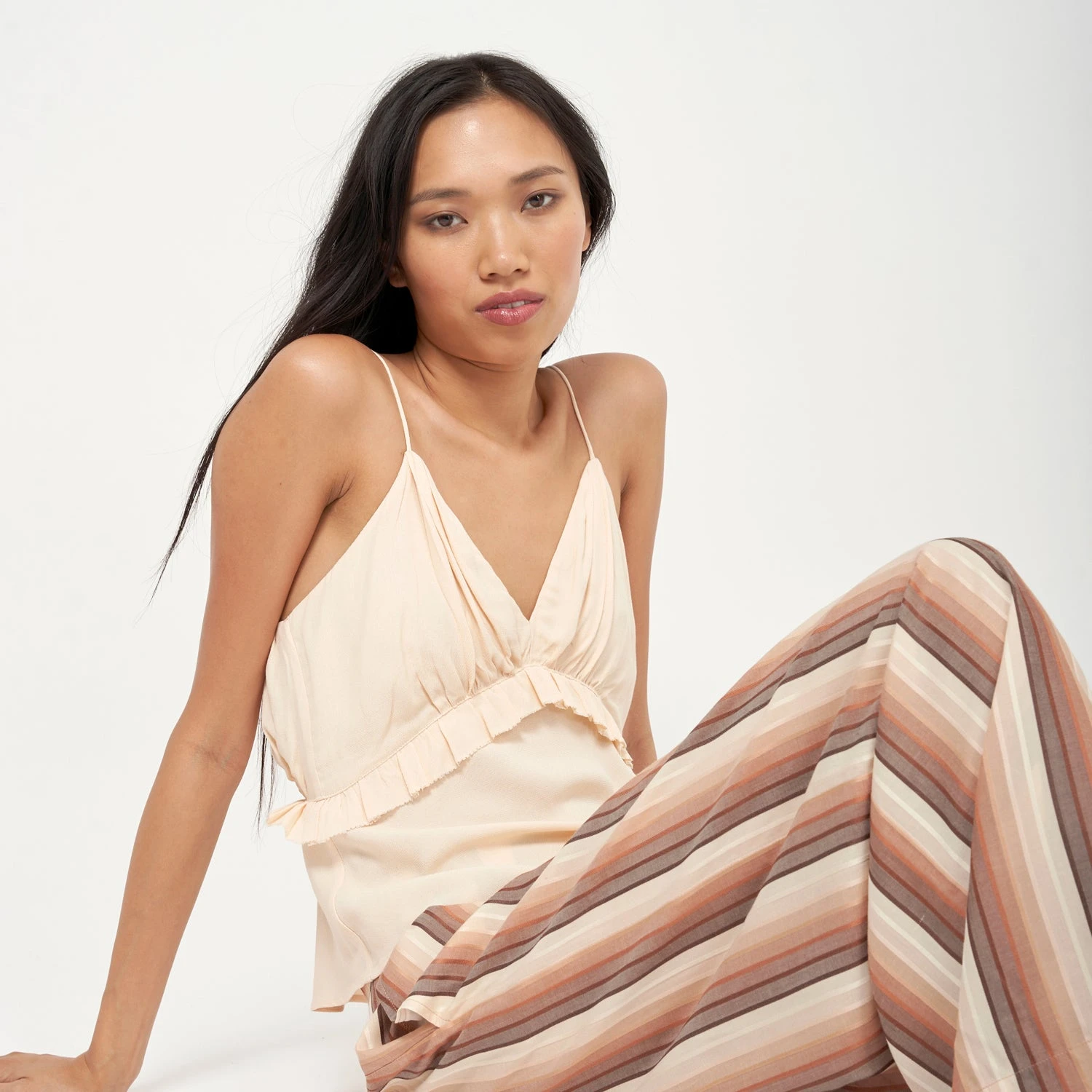 A palazzo pant with a high waist, wide leg, and two back pockets; The Kinsley will add a little whimsicality to your wardrobe, what’s not to love?