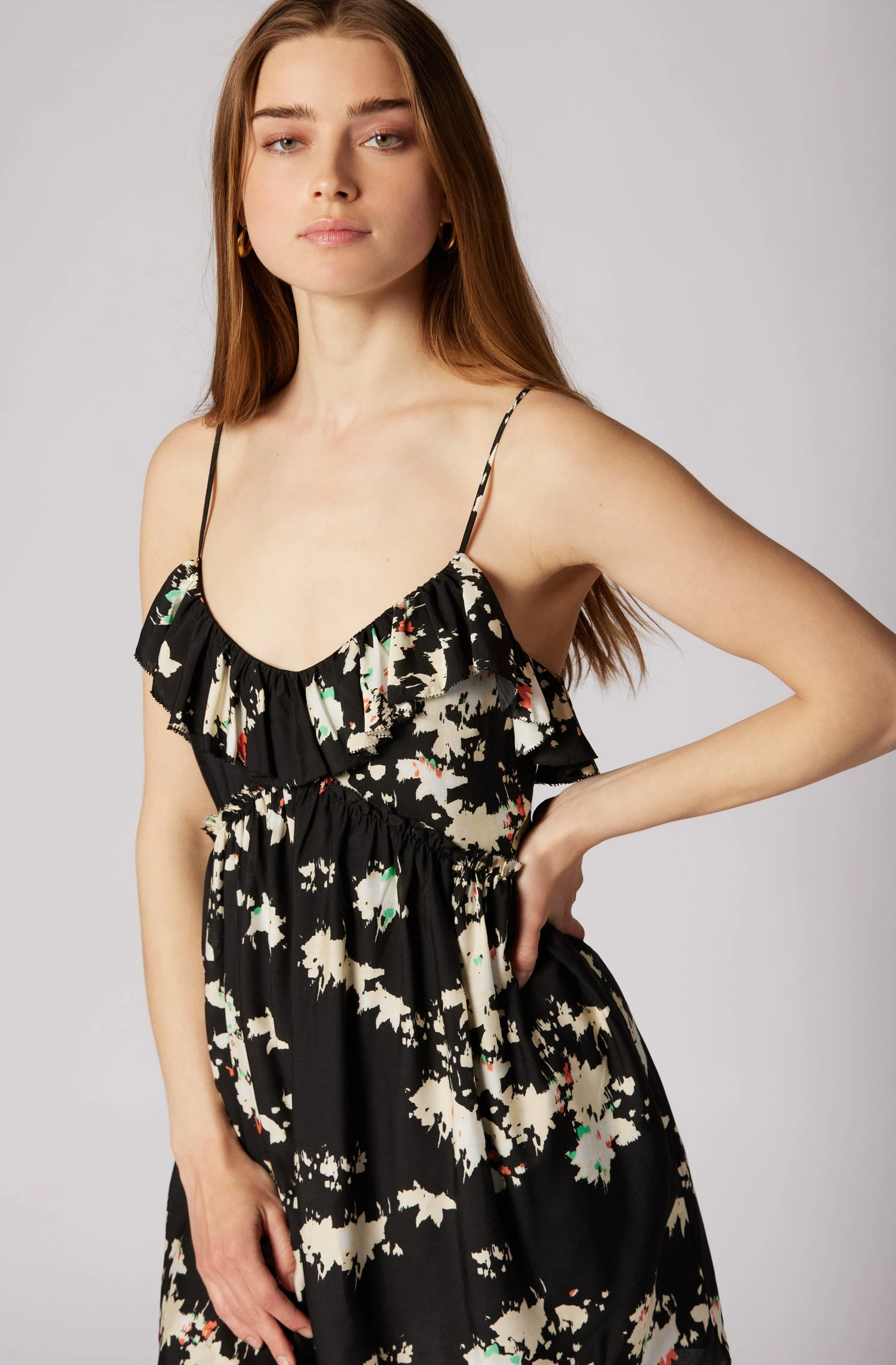 Thin straps, flowing silhouette, and just the right amount of ruffles; The Lilli moves like a summer breeze. This silk satin design can be worn with sneakers and a light denim jacket or dressed up with heels and the right accessories.