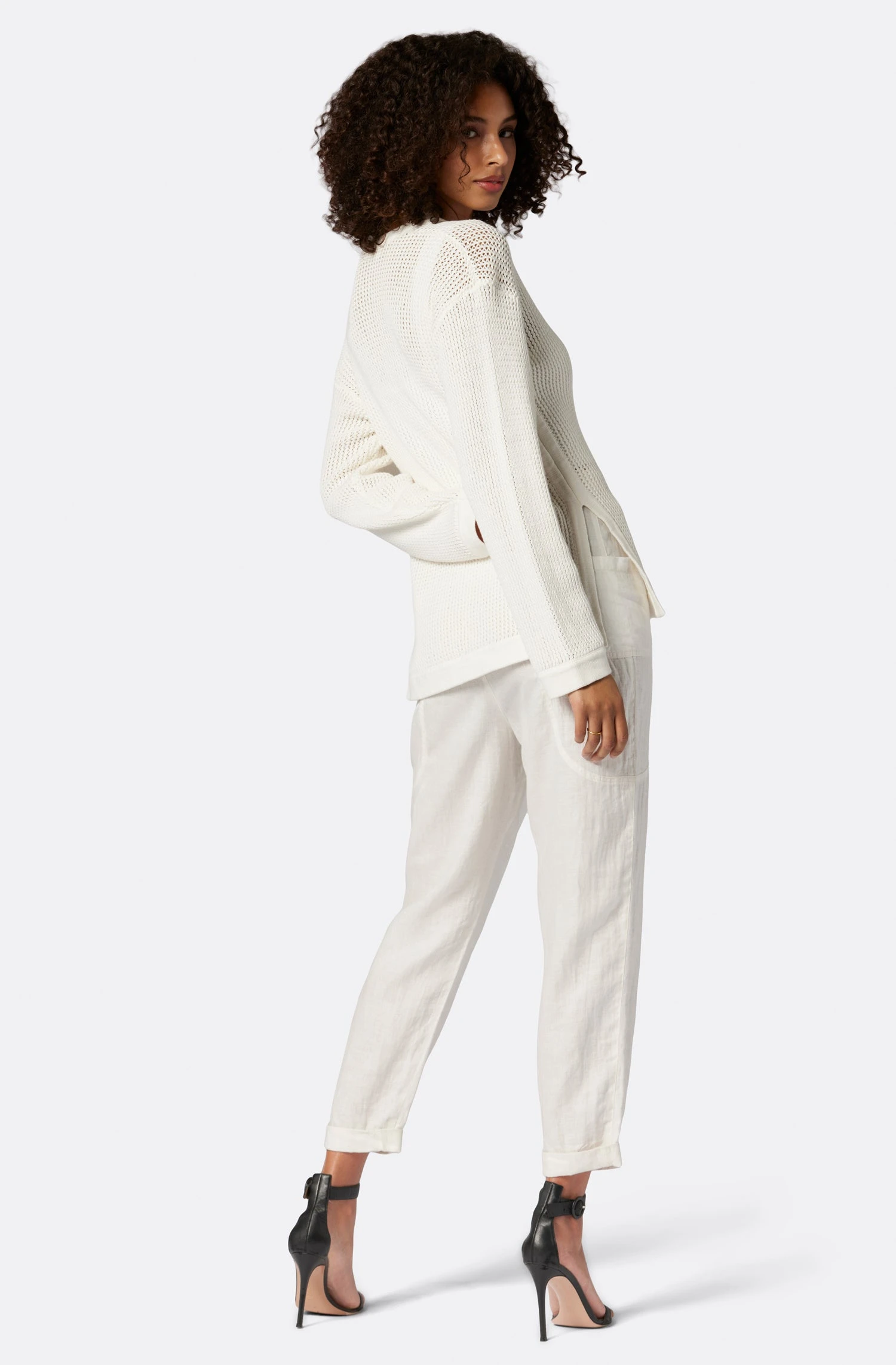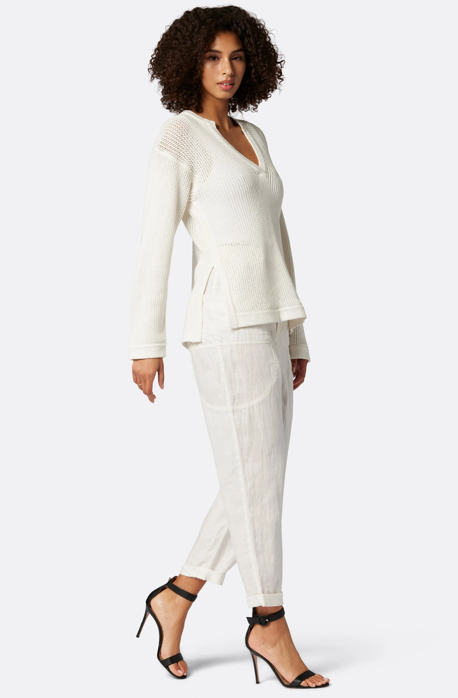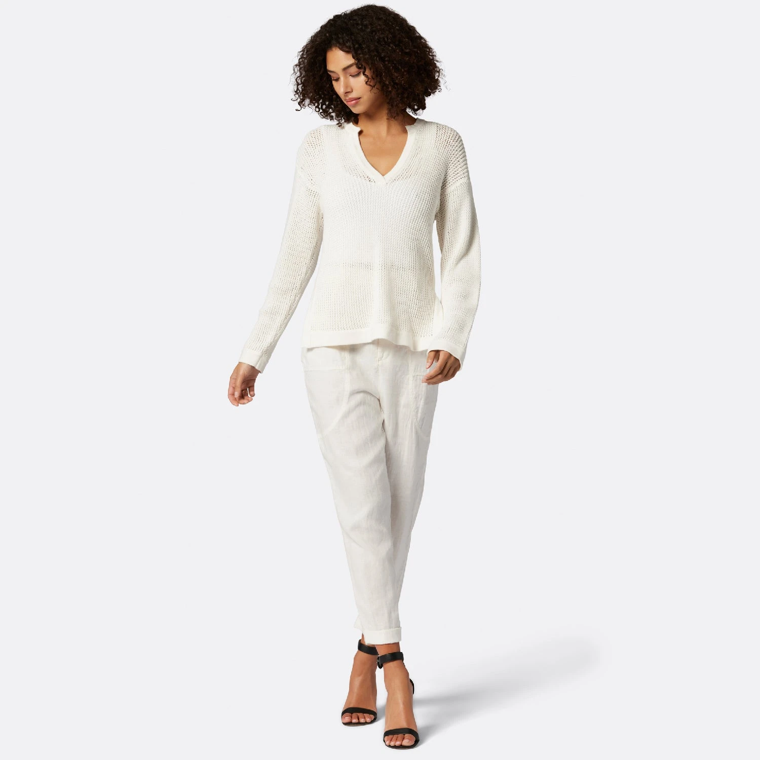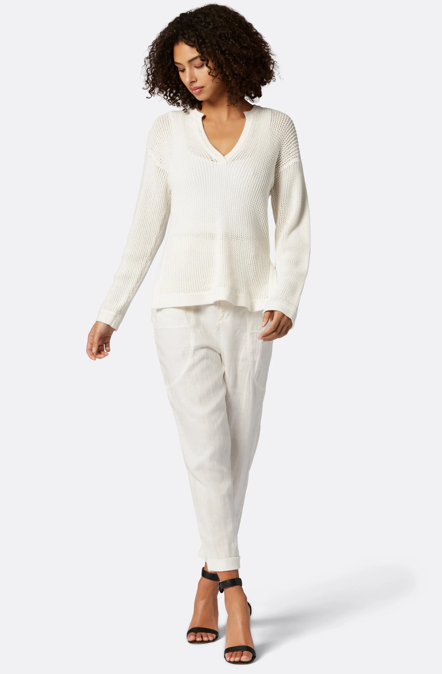 Joie Lyra V-Neck Crochet Cotton Sweater