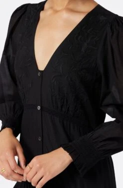 The Meredine brings a sort of vintage French fantasy with its carefree silhouette, deep V-neckline, and romantic sleeves. This tiered design levels up your dress collection and can be paired down or elevated with the right shoes and accessories.
