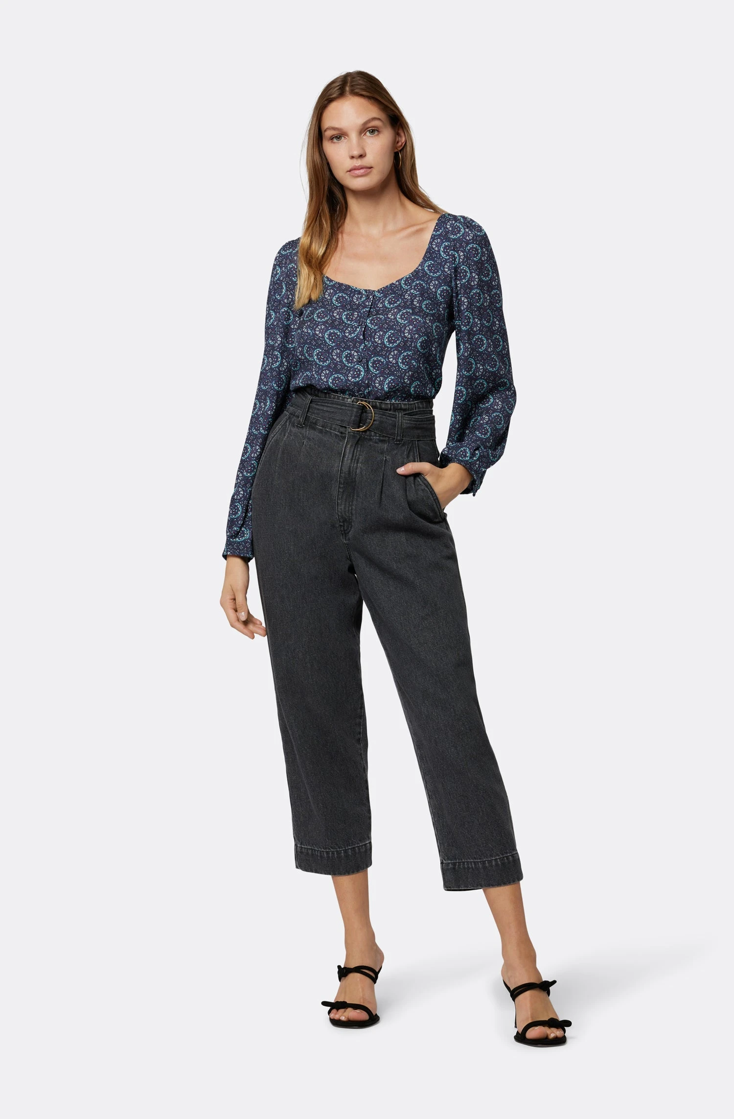 The Mongomery has a lot of retro to its design thanks to its high waist, adjustable belt, and pleats around the waist. This dark wash denim has an ankle-length straight leg and can look casual with boots, or dressed up with heels.
